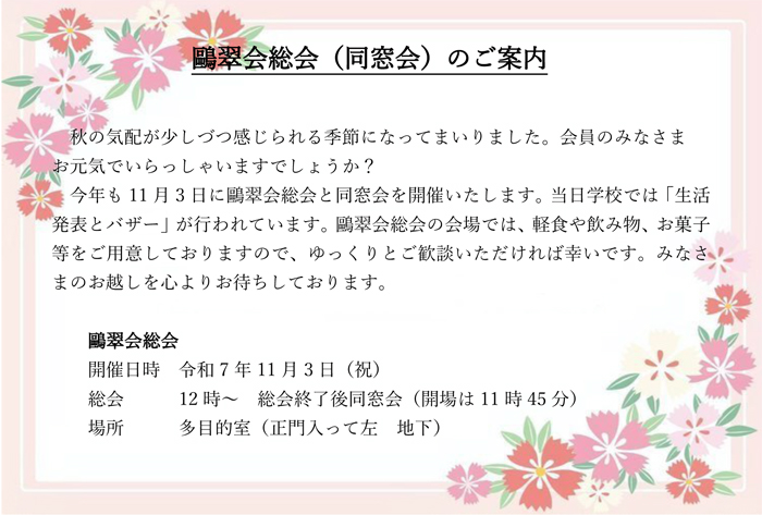 鷗翠会総会(同窓会)のお知らせ