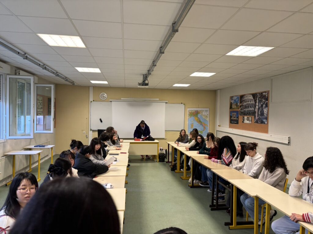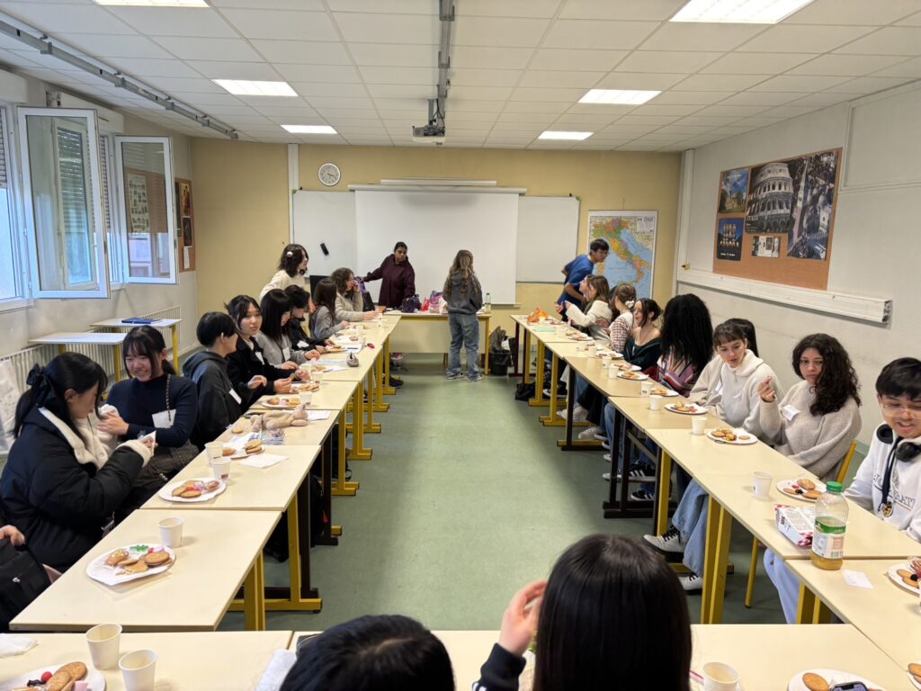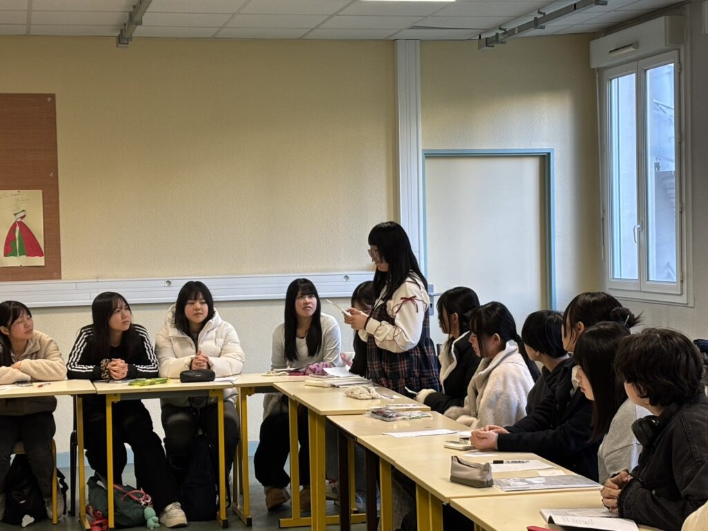 2年生の日本語の授業で歓迎会をしてもらいました。みんななんとかフランス語で自己紹介ができ、その後は楽しく交流しました。