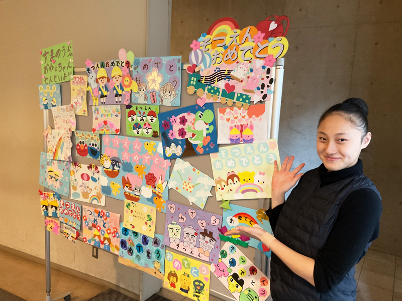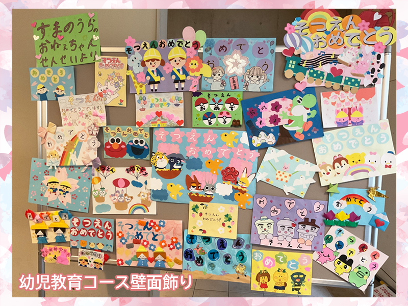 幼児教育コース3年生が授業でつくった壁面飾りを兵庫大学付属須磨幼稚園の卒園式で掲示していただきました。