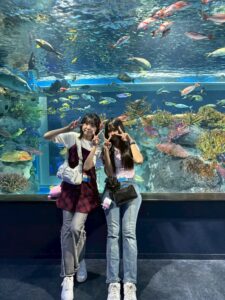 今日は、午前中はDMMかりゆし水族館に行きました。沖縄や亜熱帯地域の生き物とふれあいました。