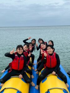 午前中マリンスポーツを行いました。天候が悪かったため、シュノーケリングは行えませんでしたが、ドラゴンボートとビーチアクティビティを楽しむことができました!