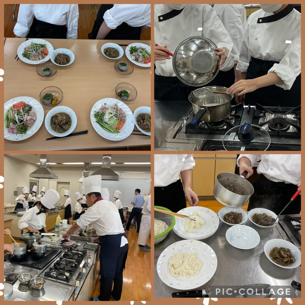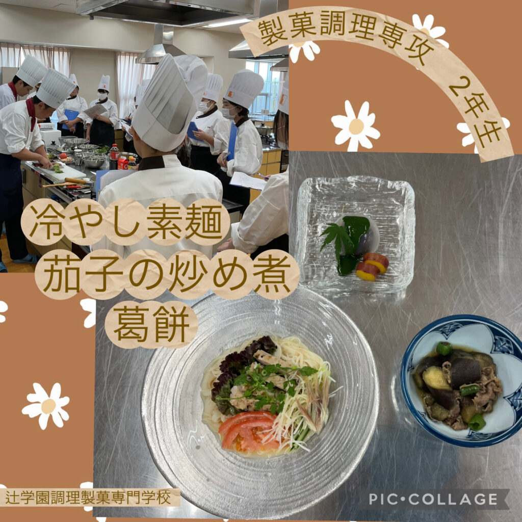 辻学園調理製菓専門学校から阪本先生、桝本先生、西澤先生にお越しいただき、『冷やし素麺』『茄子の炒め煮』『葛餅』の作り方を教えていただきました!