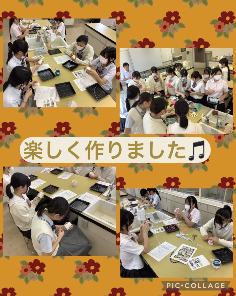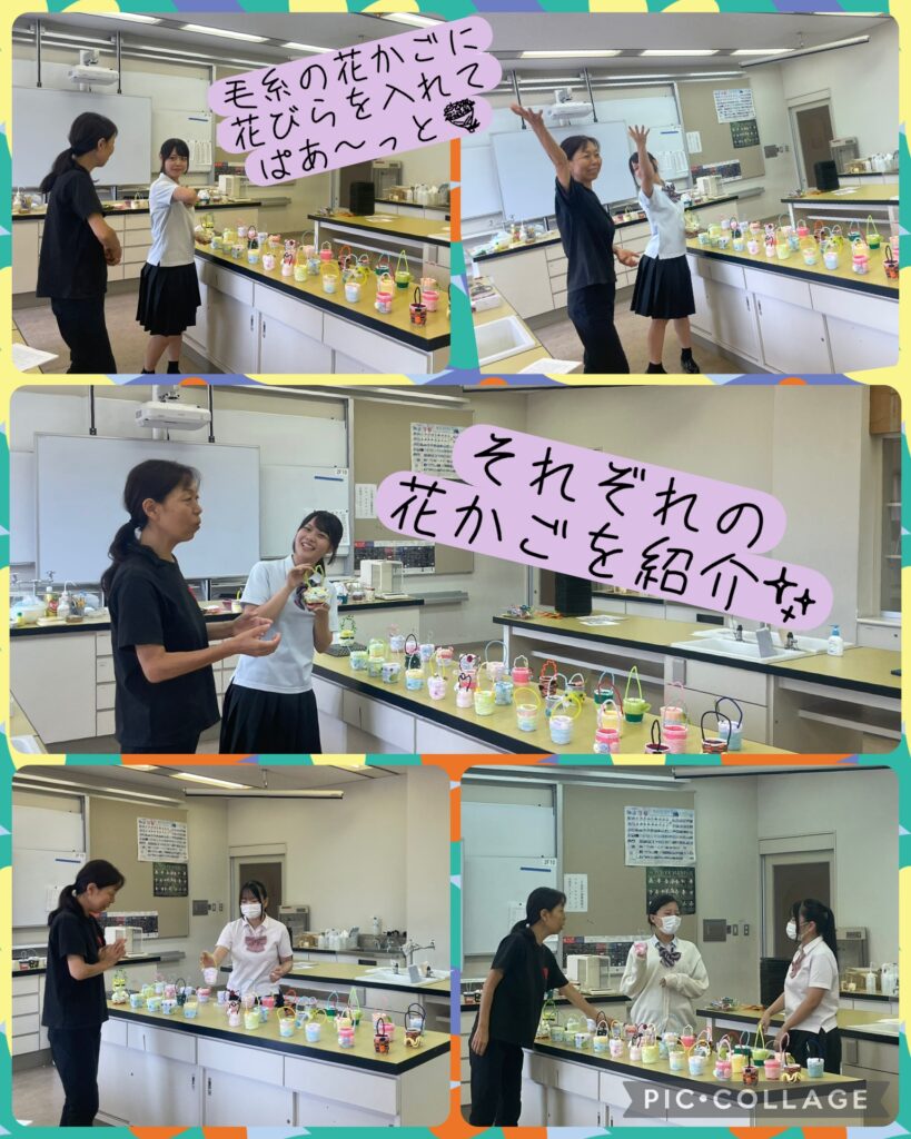 兵庫大学短期大学部の満田先生に来ていただき、毛糸の花籠つくりを行いました。