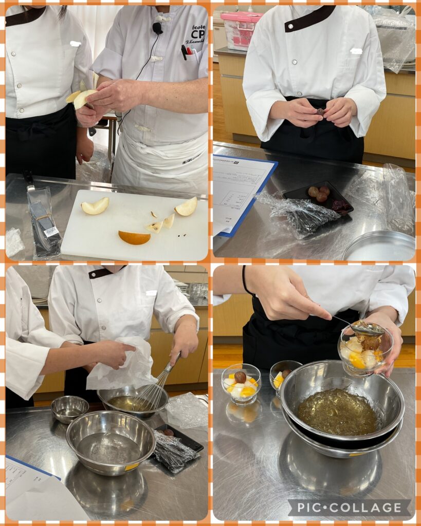 フルーツの金木犀ジュレがけでは、ジュレ作りとフルーツのカットをしました!