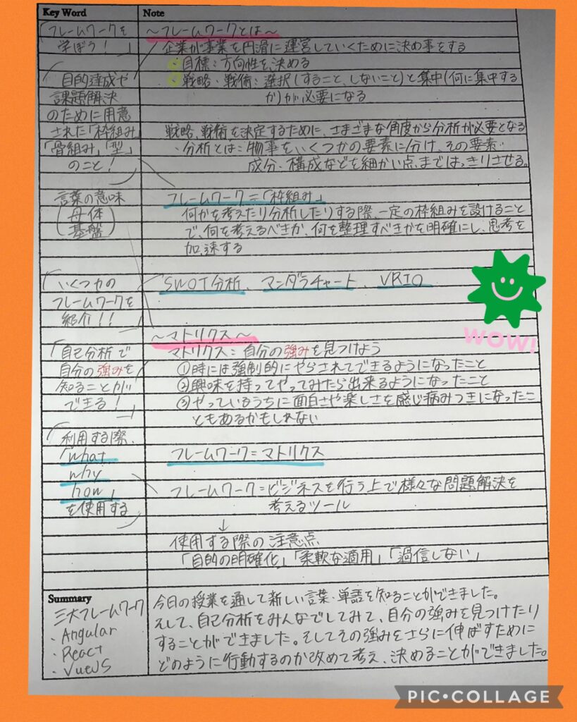始めに、フレームワークとは、目的達成や課題解決のために用意された「枠組み」「骨組み」「型」のことだと学びました✨