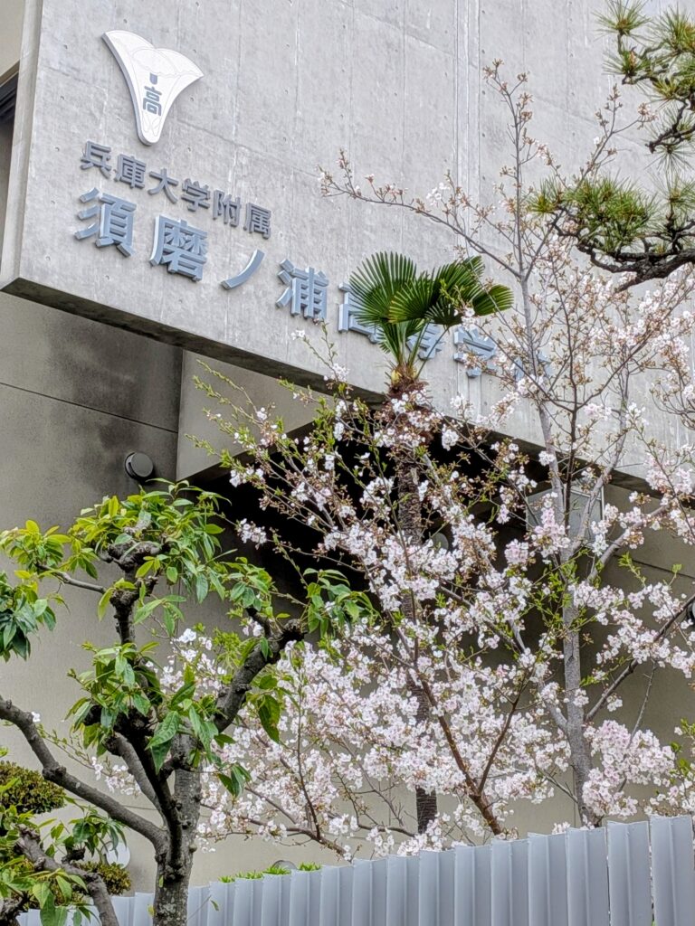 始業式、入学式では須磨ノ浦桜が皆さんの新しいスタートを迎えてくれています。須磨ノ浦桜の成長と一緒に本校の生徒達のが本校で大きく花開くのを楽しみにしています。