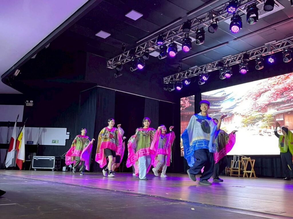 結団式の様子。羽織っているポンチョの「パランゴロモス」は、ブラジルのマント「パンゴレ」と日本の「羽衣」を融合させたものです。