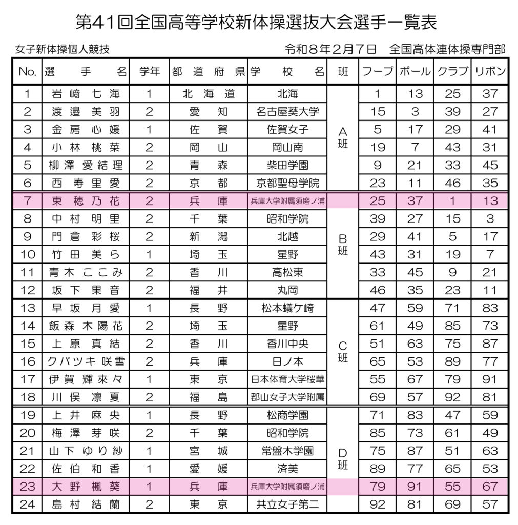 新体操部からは 2年生の東穂乃花さんと1年生の大野楓葵さんが出場します。応援よろしくお願いいたします。