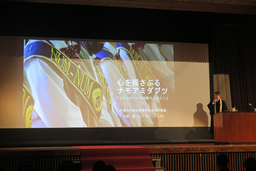 最後に先生は、こころを支えてくれるのがナモアミダブツという言葉で、絶対に高校生に刺さる言葉であるともに、感動も与えてくれる言葉だと思っているとおっしゃいました。特に文化祭でナムナムガールズの曲を披露したときに全校生徒がナモアミダブツの大合唱をしてくれた時にはとても感動したそうです。