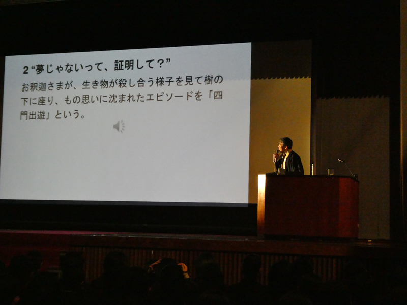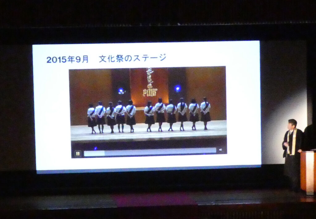 また、先生はアイドルグループの曲の歌詞に合わせてお釈迦様の生涯をクイズにしてアリーナをもりあげてくれました。そして、先生の出す問題に生徒たちが大きな声で答えていたことも印象的でした。