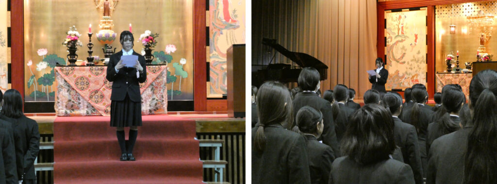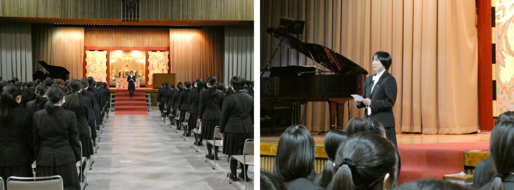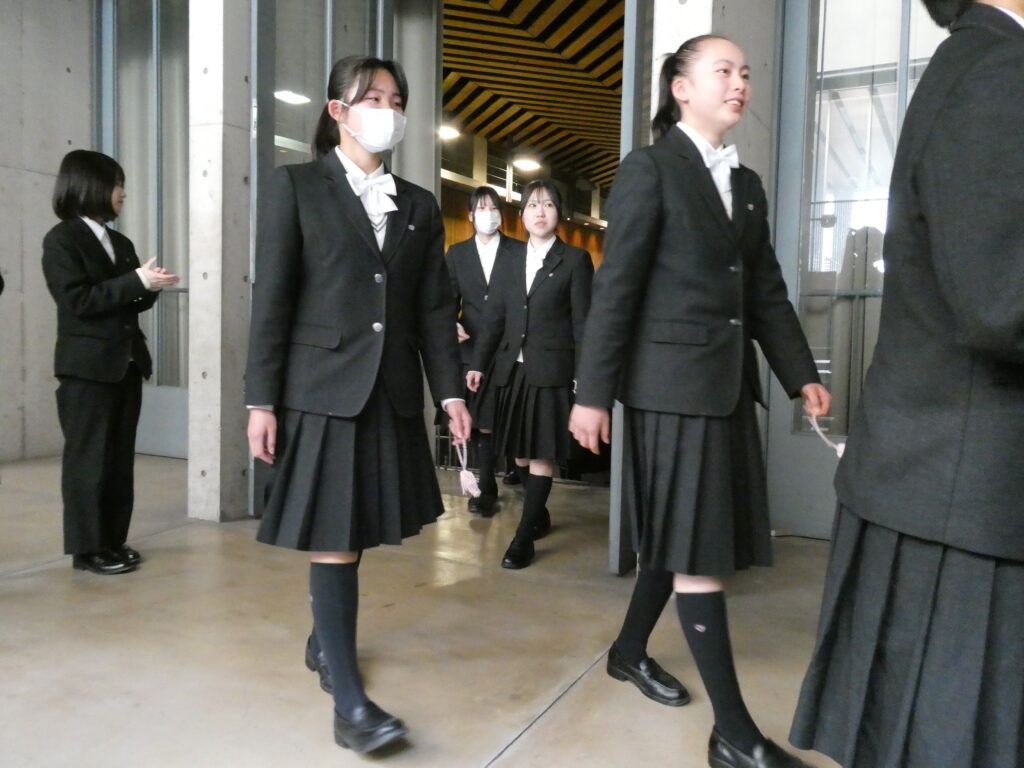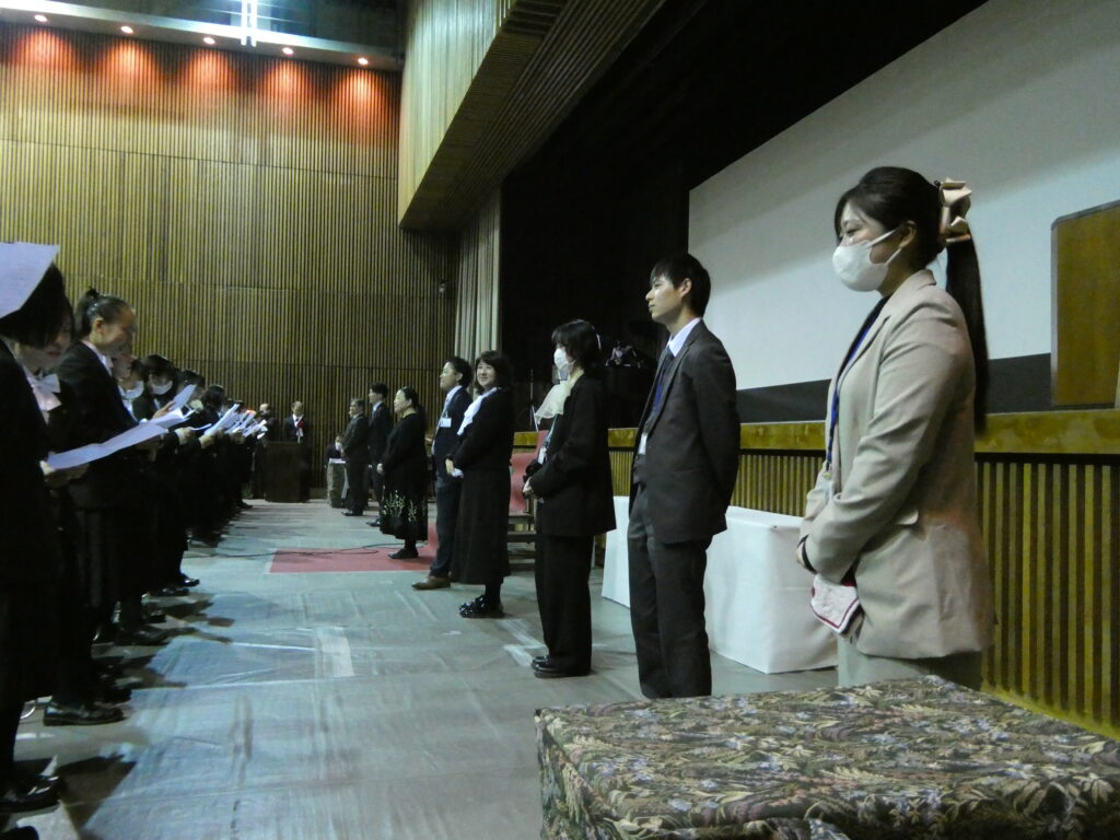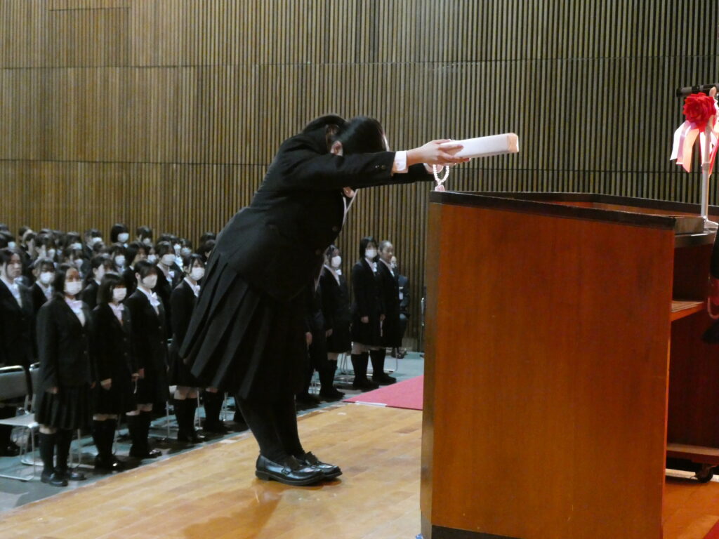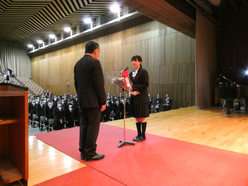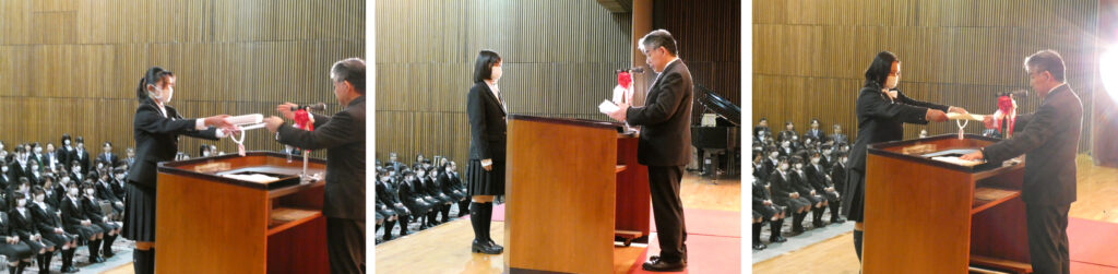 第1部では皆勤賞や各種賞の授与、在校生代表と卒業生代表からの送る言葉などが行われました。