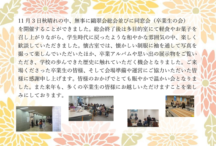卒業生の皆さまへ 鷗翠会総会(同窓会)のお礼