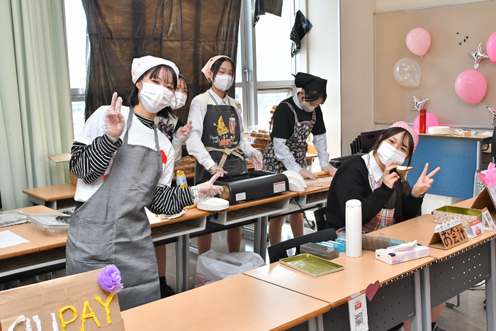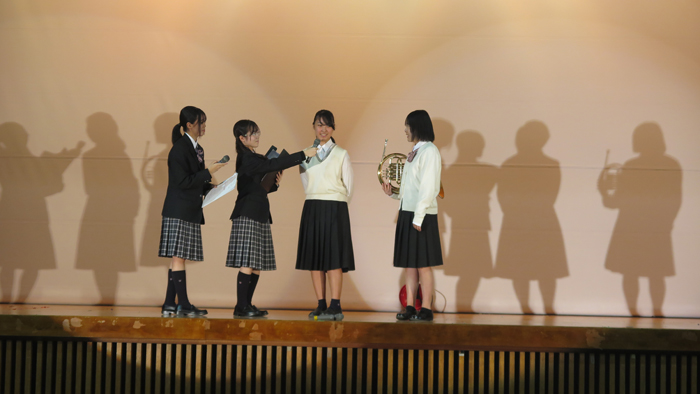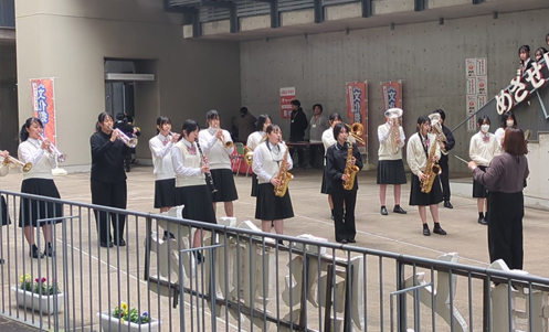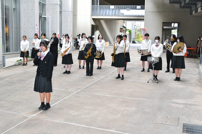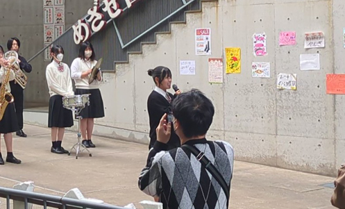 9時30分、生活発表とバザーのオープニングセレモニーが行われました。 最初に生徒会長の挨拶からはじまり、吹奏楽部によるオープニングセレモニーが行われました。